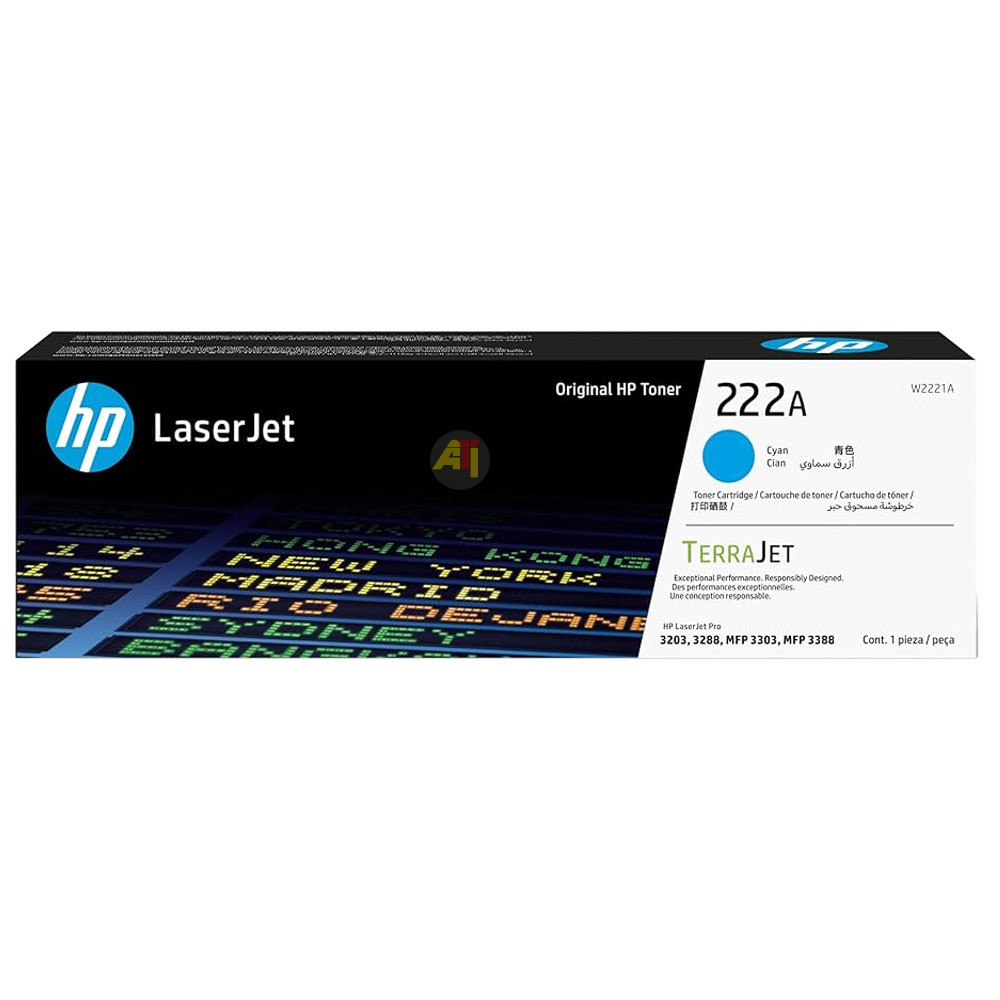 La cartouche de toner HP 222A – W2221A (Cyan) est compatible avec les imprimantes HP LaserJet Pro 3201, HP LaserJet Pro 3202, HP LaserJet Pro 3203, HP LaserJet Pro 3204, HP LaserJet Pro 3288, HP LaserJet Pro 3303.